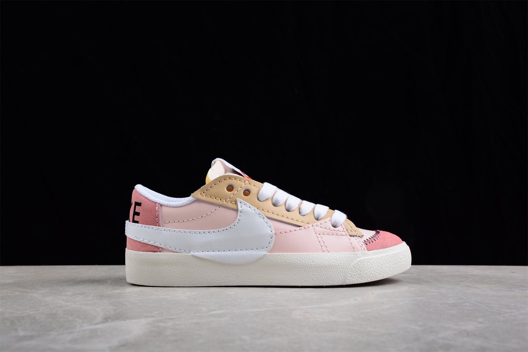 El Nike Blazer Low '77 rosa, beige y blanco reinventa el estilo clásico del baloncesto con una paleta suave y moderna. Su parte superior combina tonos pastel de rosa y beige sobre una base de cuero blanco, creando un diseño delicado y contemporáneo. El icónico Swoosh blanco resalta sobre los paneles en piel, mientras la puntera en ante rosado añade textura y un toque artesanal. La suela de goma color crema mantiene la estética retro característica del modelo, ofreciendo comodidad y tracción duradera. Ideal para quienes buscan un look versátil, femenino y lleno de estilo.
