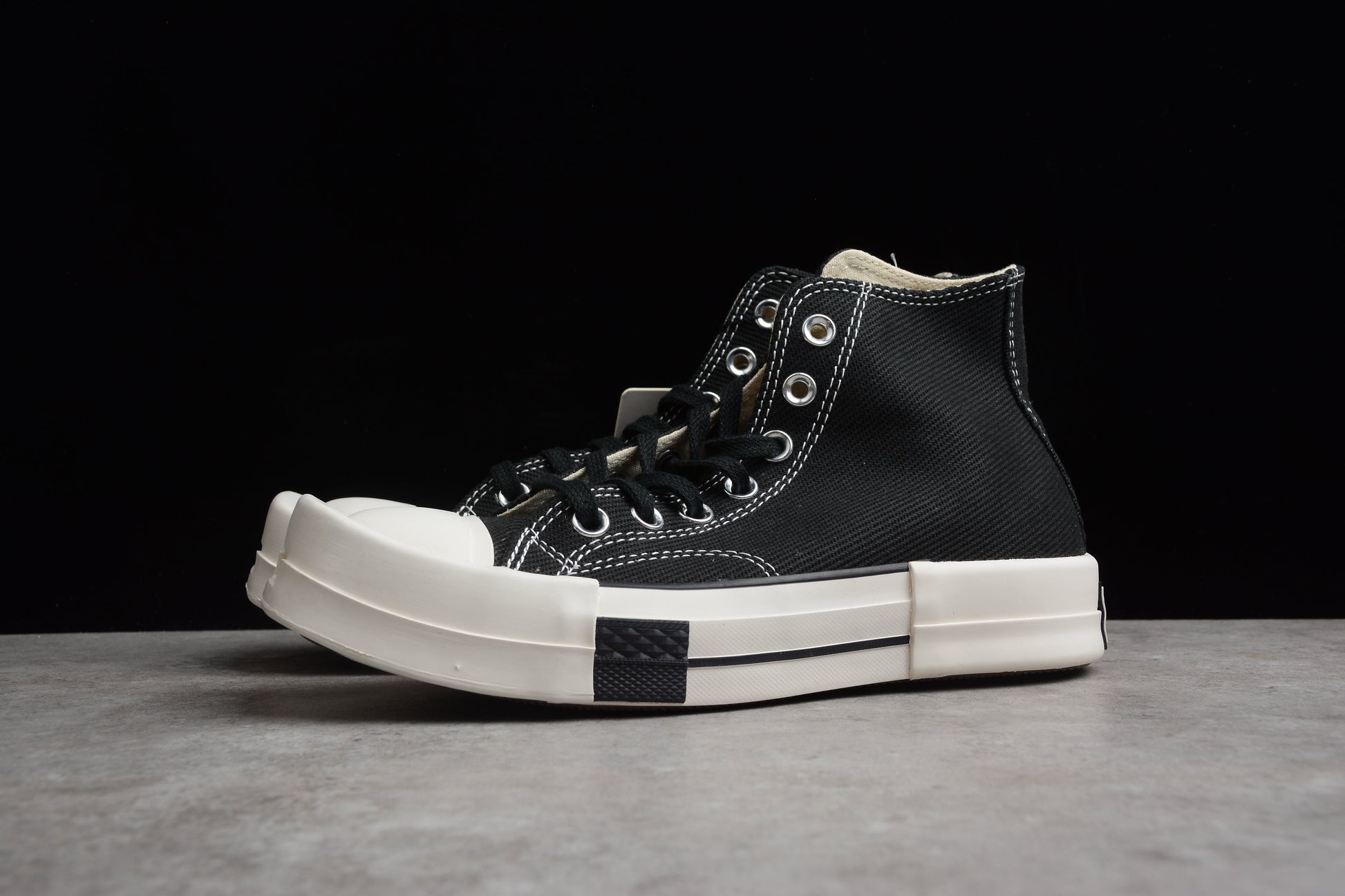 Las Converse Chuck 70 Plus HI Negro y Blanco reinventan el diseño clásico de las Chuck 70 con una silueta moderna y vanguardista. Confeccionadas en lona premium negra, destacan por su estructura asimétrica y la suela dividida en tono egret que aporta un toque contemporáneo sin perder la esencia del modelo original. Las costuras blancas contrastan con el fondo oscuro, creando un estilo urbano y sofisticado. Este modelo combina la comodidad tradicional de Converse con una estética innovadora, ideal para quienes buscan un look audaz, minimalista y lleno de personalidad.