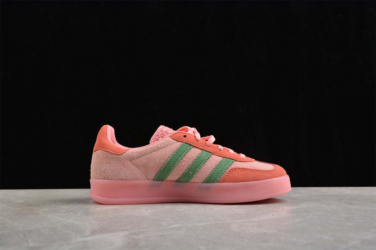 Las adidas Gazelle rosa y verde aportan una combinación única de frescura y estilo retro que las convierte en una pieza llamativa y moderna. Su parte superior en suave tono rosa transmite un aire femenino y delicado, mientras los detalles en verde añaden contraste y un toque vibrante que realza su diseño icónico. Fabricadas con materiales de alta calidad, estas zapatillas ofrecen una comodidad excepcional y una durabilidad perfecta para el uso diario. Fieles a la silueta clásica de las Gazelle, combinan a la perfección autenticidad, color y personalidad.