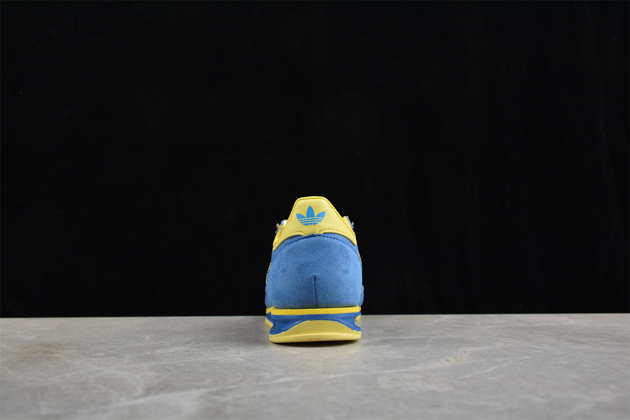 Las adidas SL 72 azul y amarillo rinden homenaje al legado del running de los años 70 con un toque vibrante y moderno. Su parte superior combina nylon azul con refuerzos de ante y las tres franjas en amarillo intenso, creando un contraste lleno de energía. La entresuela ligera aporta confort diario, mientras que la suela dentada conserva el auténtico estilo retro de adidas Originals. Un clásico renovado que destaca por su personalidad y dinamismo.