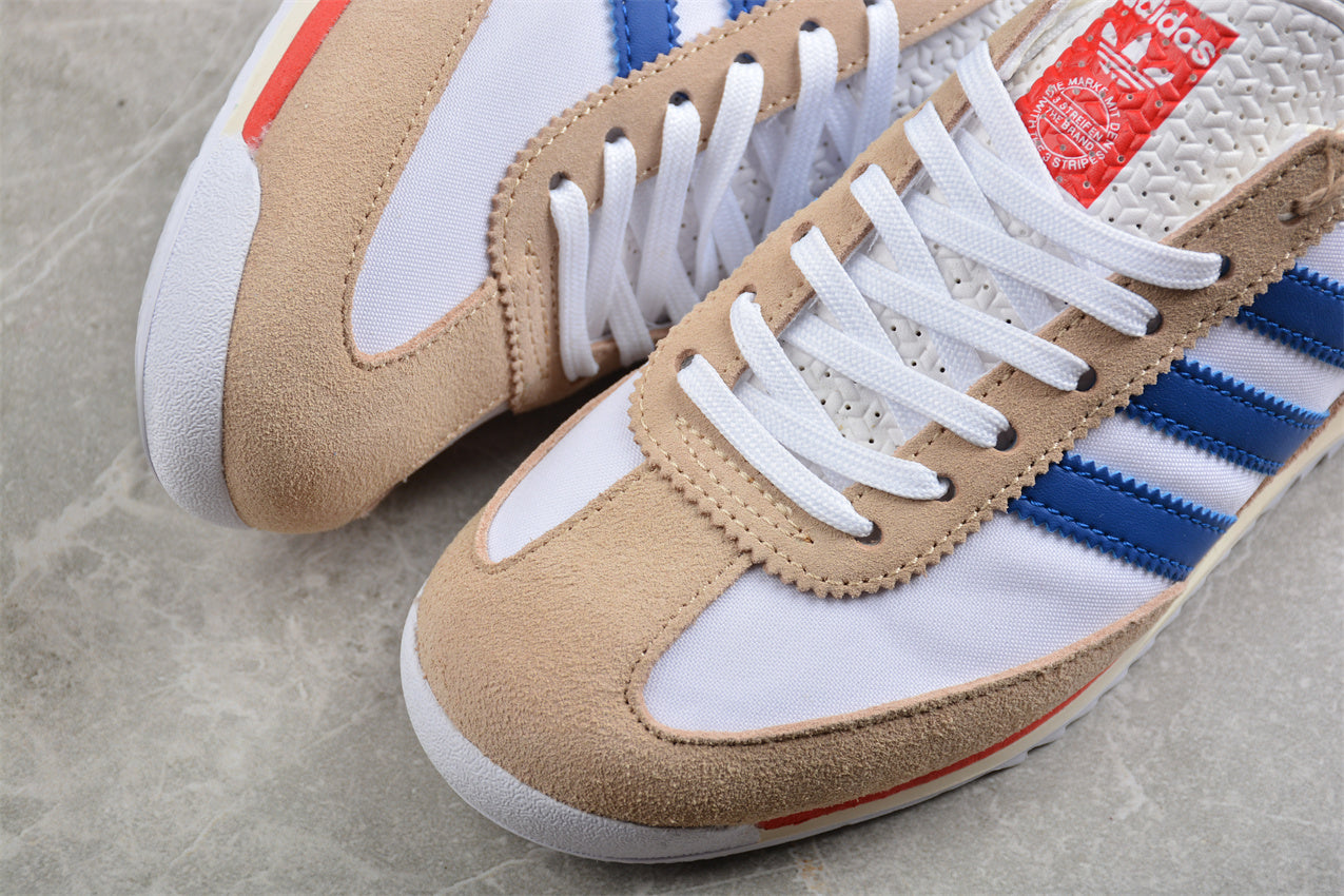Las adidas SL 72 blanco y azul combinan la esencia del diseño clásico con un estilo limpio y atemporal. Inspiradas en las icónicas zapatillas de running de los años 70, presentan una parte superior en nylon blanco con refuerzos de ante y las emblemáticas tres franjas en azul intenso. Su entresuela ligera garantiza comodidad durante todo el día, mientras que la suela dentada aporta agarre y carácter retro. Un modelo adidas Originals que equilibra perfectamente la herencia deportiva y la versatilidad urbana.