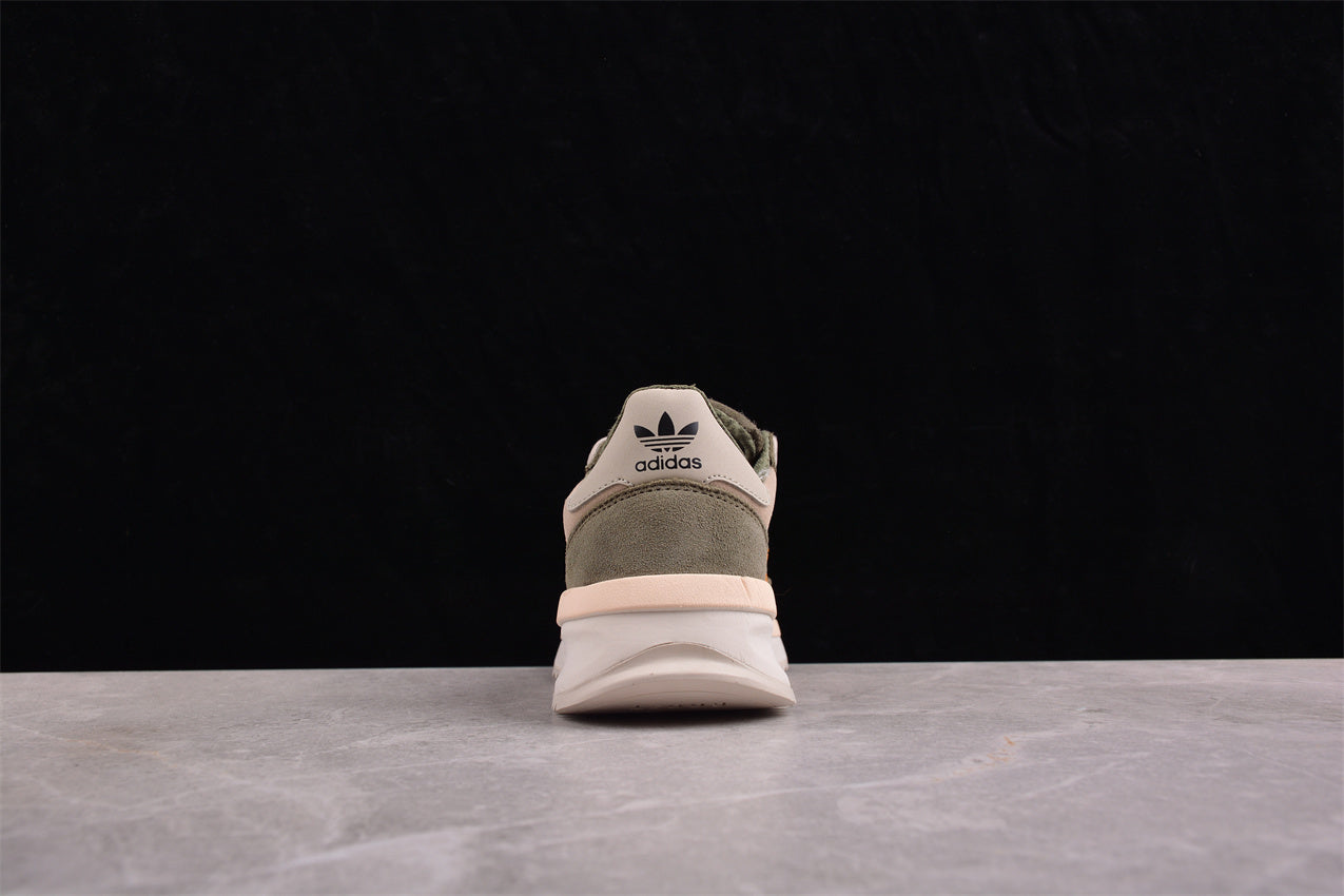 Las adidas SL 72 verde oliva y beige claro combinan la esencia del running clásico con un estilo urbano contemporáneo. Su parte superior, confeccionada en una mezcla de nylon y ante, presenta una paleta natural de tonos tierra y beige que aporta equilibrio y versatilidad. Las tres franjas icónicas en tono claro contrastan sutilmente con el verde oliva del diseño, mientras que la entresuela ligera y la suela dentada garantizan comodidad y tracción. Un modelo que une herencia deportiva y elegancia casual para el día a día.