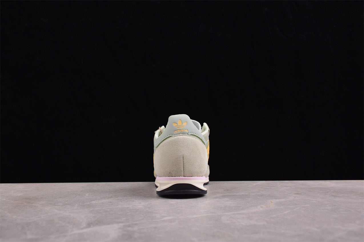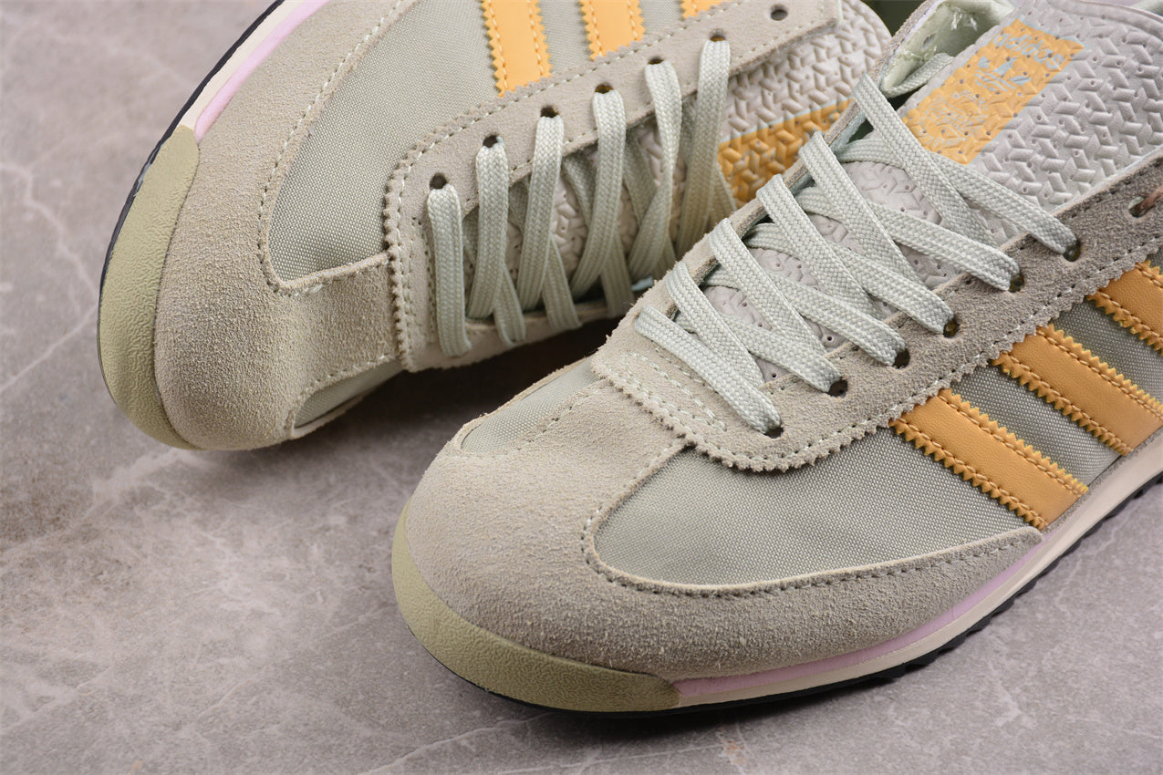 Las adidas SL 72 verde y amarillo mostaza reimaginan el legado deportivo de los años 70 con una paleta de colores moderna y elegante. Su parte superior en nylon verde claro con refuerzos de ante suave se combina con las icónicas tres franjas en tono mostaza, logrando un contraste retro y distintivo. La entresuela ligera ofrece comodidad diaria, mientras que la suela dentada asegura tracción y un look vintage. Un clásico adidas Originals reinterpretado para quienes valoran la autenticidad y el estilo atemporal.
