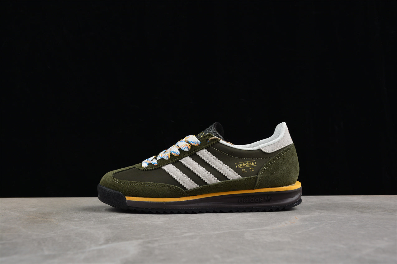 Las adidas SL 72 verde y blanco representan el equilibrio perfecto entre herencia deportiva y estilo contemporáneo. Su diseño combina una base de nylon verde con refuerzos de ante y las icónicas tres franjas en blanco, creando un contraste limpio y atemporal. La entresuela ligera ofrece amortiguación diaria, mientras que la suela dentada conserva el inconfundible carácter vintage de adidas Originals. Un clásico versátil que añade un toque retro a cualquier look casual.